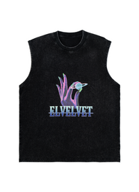 Black Washed 'RULE THE WORLD' Graphic Vintage Sleeveless Top- Teal Chevron Sleeveless Graphic T-Shirt