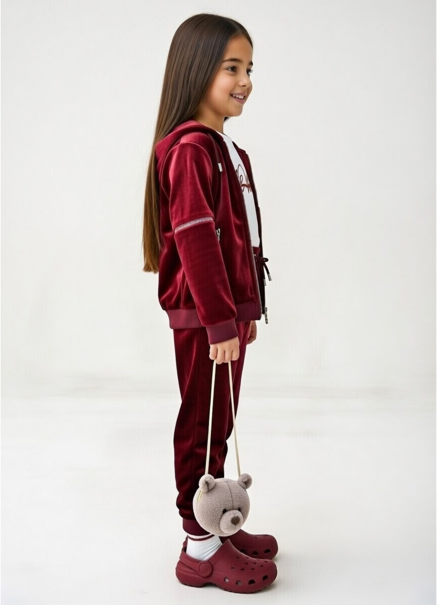 Inform when this item available Kids Burgundy Vélvét Full Tracksuit-Boys & Girls